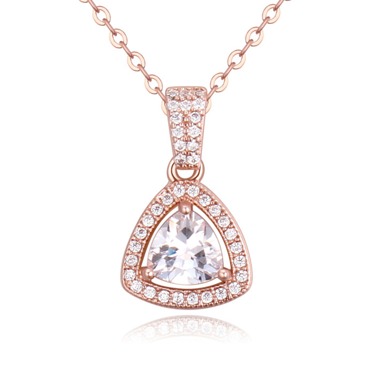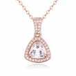 Hermoso dije en baño de oro rosa de 18 quilates, fino diseño, con cristal blanco corte trillion e incrustaciones de cristales en color blanco. Fabricado en una estructura de aleación de platino con rodio sin níquel.