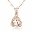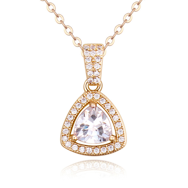 Delicado y fino dije en baño de oro amarillo de 18 quilates, fino diseño con cristal blanco corte trillion e incrustaciones de cristales en color blanco. Fabricado en una estructura de aleación de platino con rodio sin níquel.