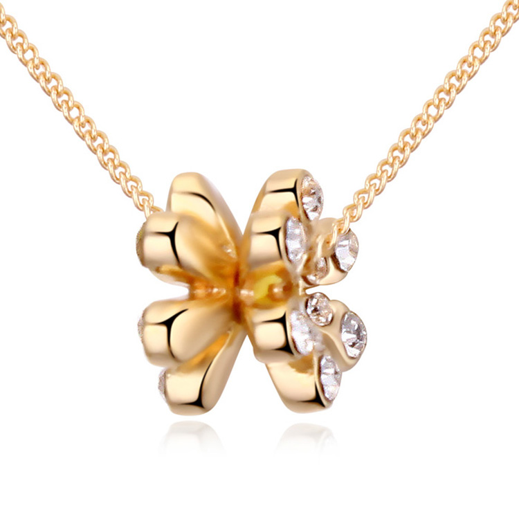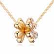 Dije con cadena en baño de oro amarillo de 18 quilates, diseño de flor con incrustaciones de cristales en color blanco. Fabricado en una estructura de aleación de platino con rodio sin níquel.