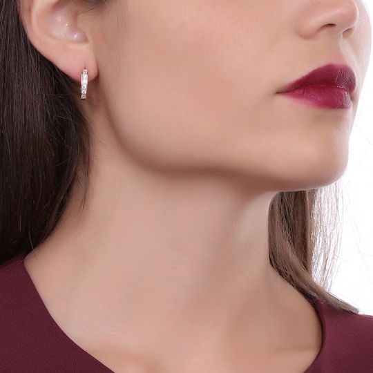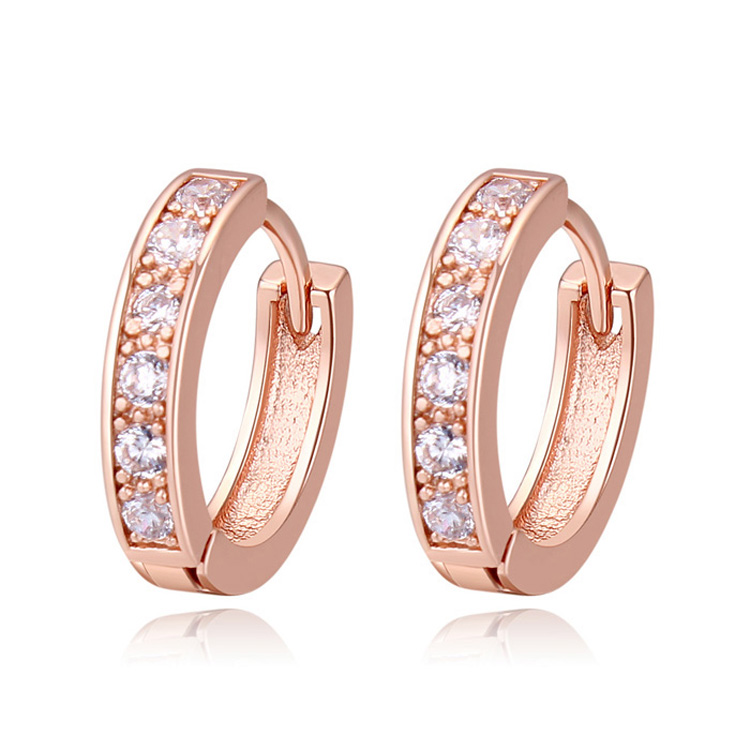Preciosas arracadas en baño de oro rosa de 18 quilates, elegante diseño con incrustaciones de cristales blancos. Fabricado en una estructura de aleación de platino con rodio sin níquel.