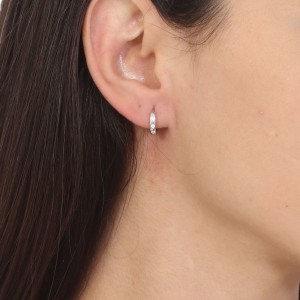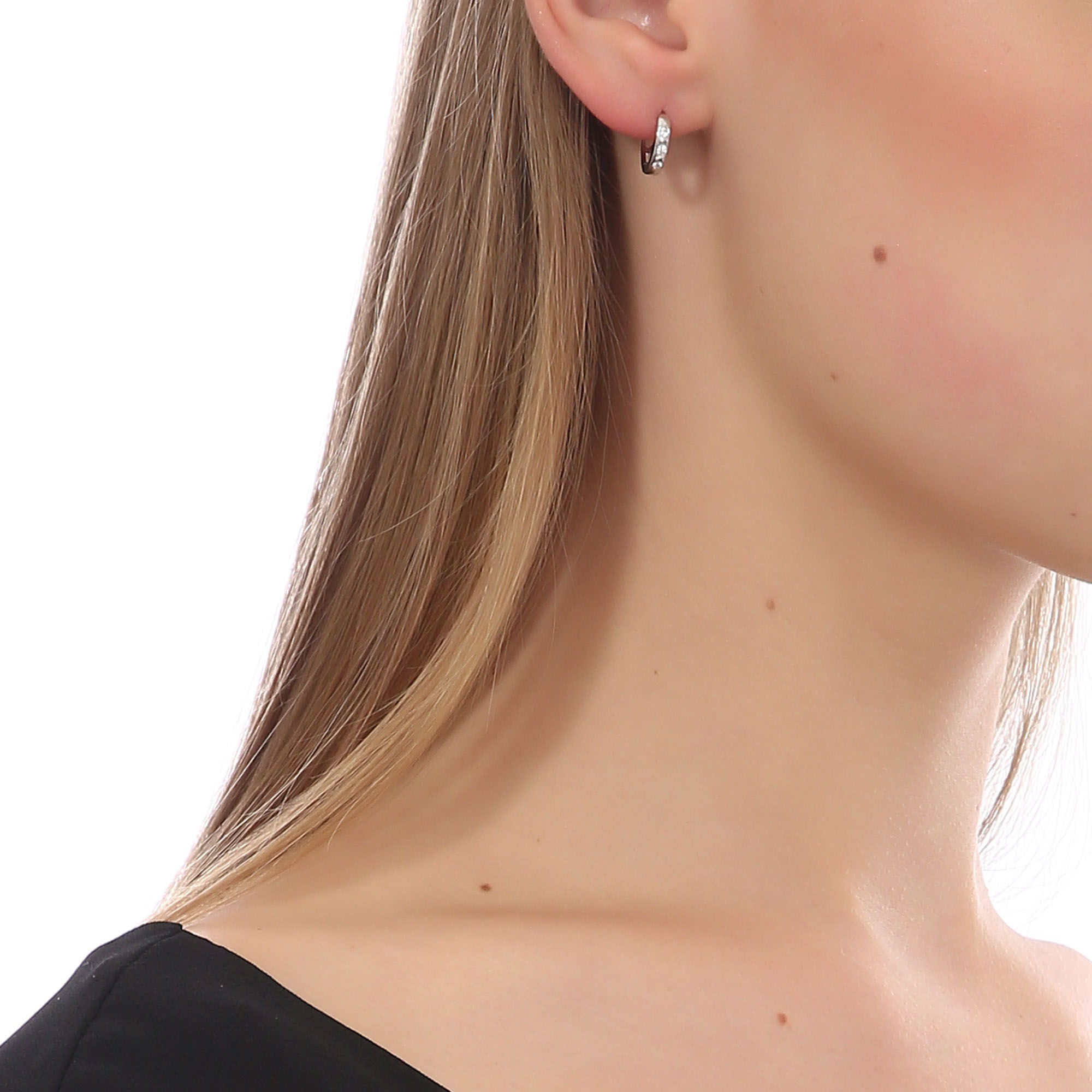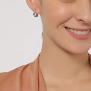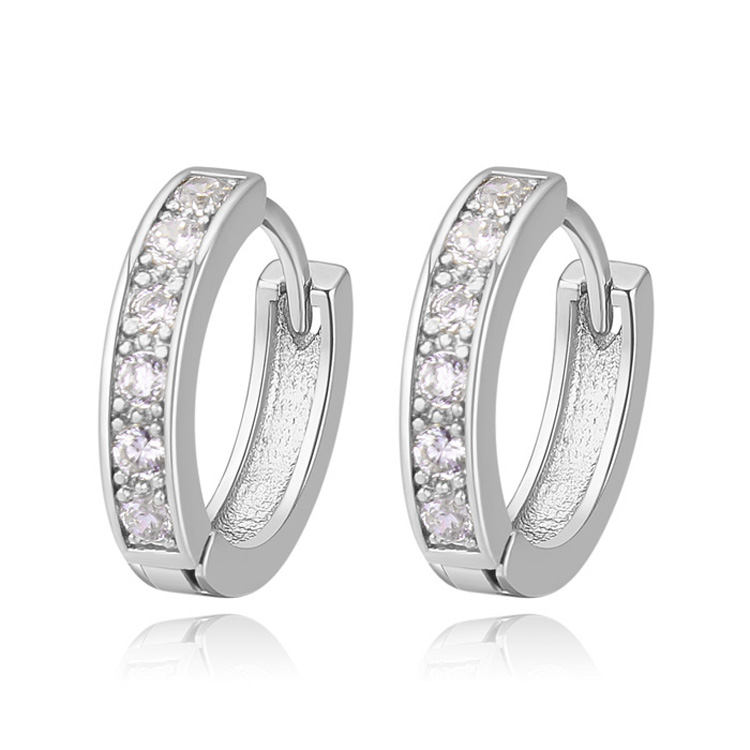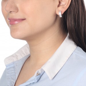 Preciosas arracadas en baño de oro blanco de 18 quilates, elegante diseño con incrustaciones de cristales en color blanco. Fabricado en una estructura de aleación de platino con rodio sin níquel.