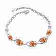 Pulsera en baño de oro blanco de 18 quilates , diseño de gotas con incrustaciones de cristales en color blanco y ámbar. Fabricado en una estructura de aleación de platino con rodio sin níquel.