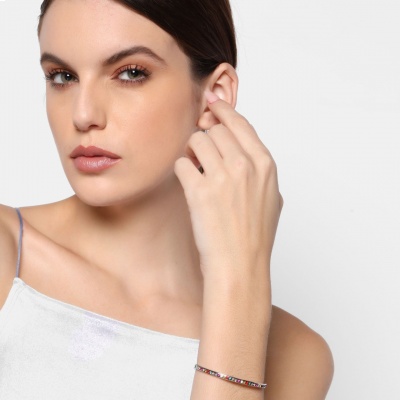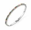 Hermoso brazalete en baño de oro blanco de 18 quilates , con incrustaciones de cristales en color ámbar, blanco, morado, rojo y turquesa. Fabricado en una estructura de aleación de platino con rodio sin níquel.