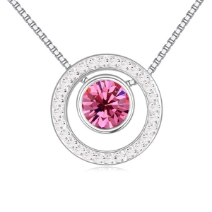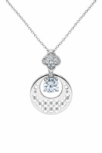 Lindo dije en baño de oro blanco de 18 quilates, diseño de círculos y flor calados con incrustaciones de cristales en color blanco. Fabricado en una estructura de aleación de platino con rodio sin níquel.