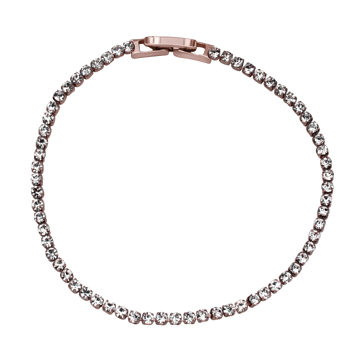 Hermosa pulsera en baño de oro rosa de 18 quilates , exquisito diseño con incrustaciones de cristales blancos. Fabricado en una estructura de aleación de platino con rodio sin níquel.