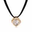 Collar con detalles de baño de oro amarillo de 18 quilates, diseño de cubo con cristal en color blanco y cuello de cuero en color negro. Fabricado en una estructura de aleación de platino con rodio sin níquel.