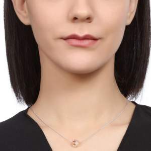 Collar con cadena en baño de oro blanco de 18 quilates, diseño de esfera de cristal en color ámbar. Fabricado en una estructura de aleación de platino con rodio sin níquel.
