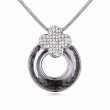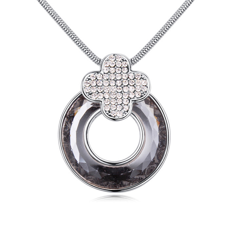 Collar en baño de oro blanco de 18 quilates, fino diseño de aro con cristal color oxford, detalle de flor plateada e incrustaciones de cristales blancos. Fabricado en una estructura de aleación de platino con rodio sin níquel.