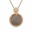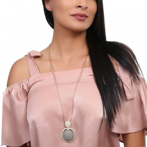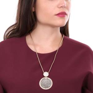 Collar en baño de oro amarillo de 18 quilates, fino diseño calado con incrustaciones de cristales en color blanco y detalle en color negro. Fabricado en una estructura de aleación de platino con rodio sin níquel.