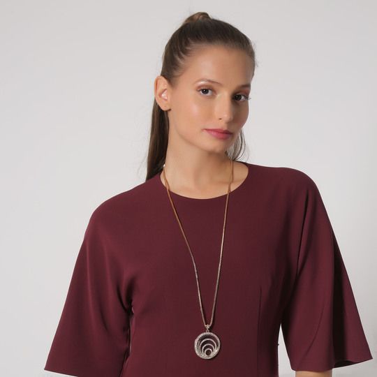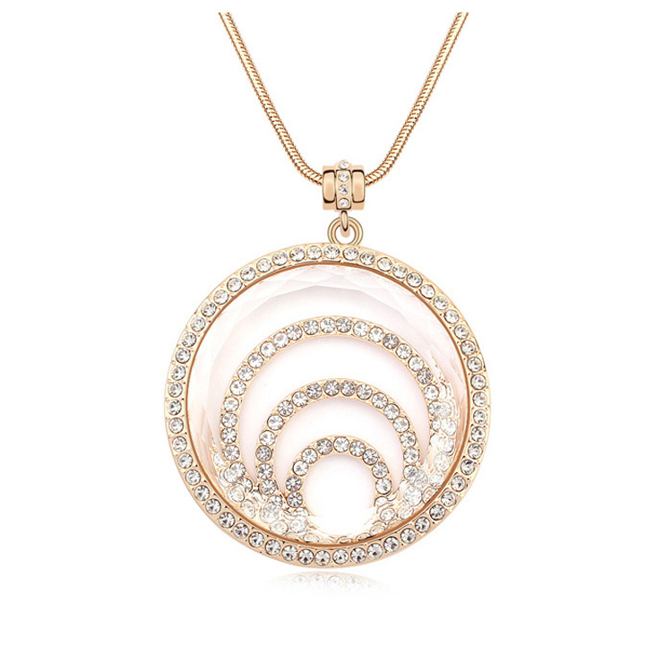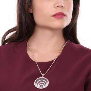 Collar en baño de oro amarillo de 18 quilates, diseño de circulo con incrustaciones de cristales en color blanco. Fabricado en una estructura de aleación de platino con rodio sin níquel.