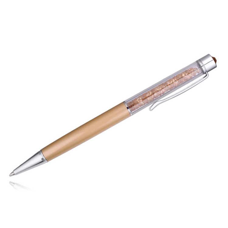 Bolígrafo en baño de oro blanco de 18 quilates con cristales y cubierta en color ámbar. Tinta negra Fabricado en una estructura de aleación de platino con rodio sin níquel.