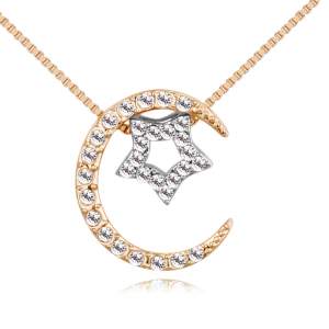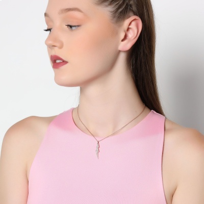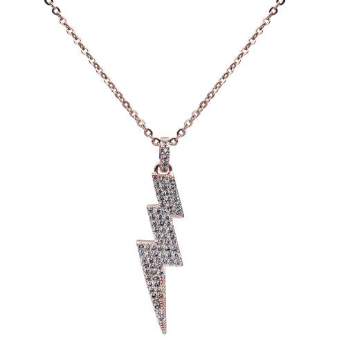 Dije con cadena en baño de oro rosa de 18 quilates, diseño de rayo con incrustaciones de cristales en color blanco. Fabricado en una estructura de aleación de platino con rodio sin níquel.