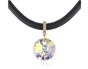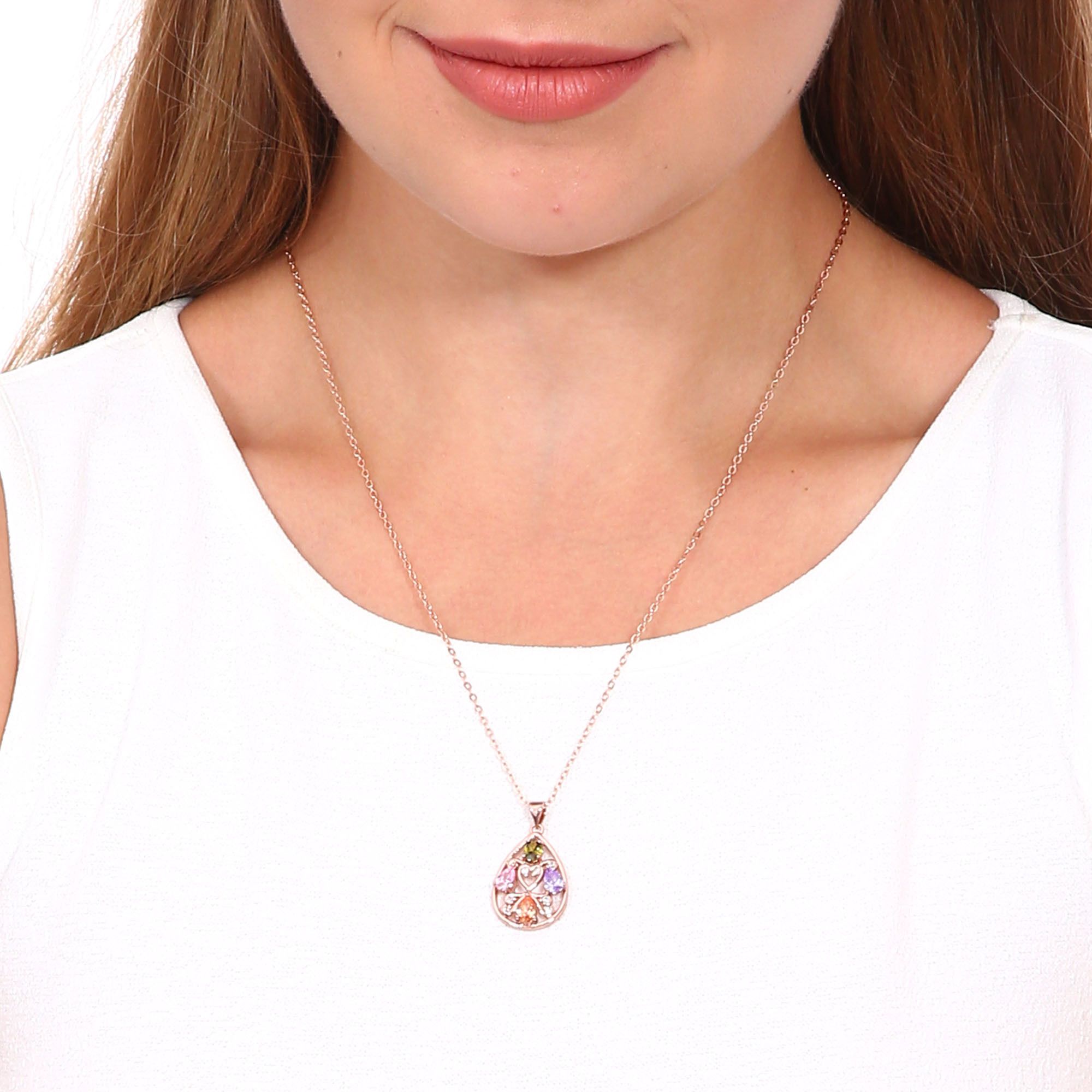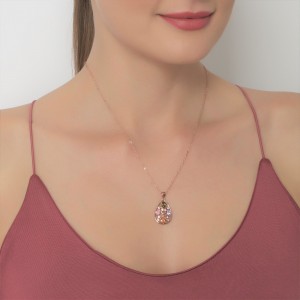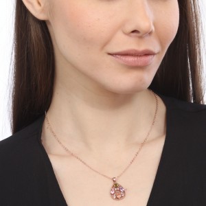 Dije con cadena en baño de oro rosa de 18 quilates, diseño de gota con incrustaciones de cristales en colores. Fabricado en una estructura de aleación de platino con rodio sin níquel.