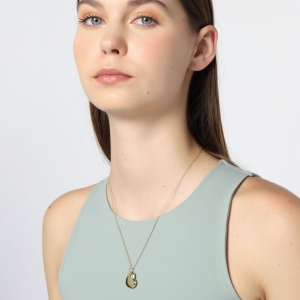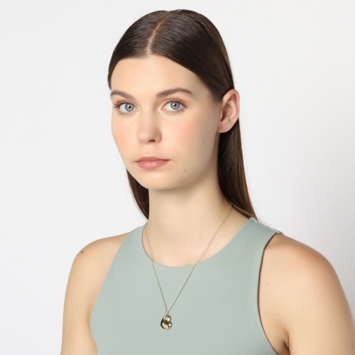 Dije con cadena en baño de oro amarillo de 18 quilates, diseño de corazones dorados, acabado brillante. Fabricado en una estructura de aleación de platino con rodio sin níquel.