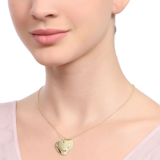 Dije con cadena en baño de oro amarillo de 18 quilates, diseño de corazones estilizados. Fabricado en una estructura de aleación de platino con rodio sin níquel.