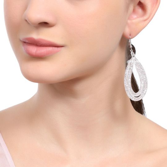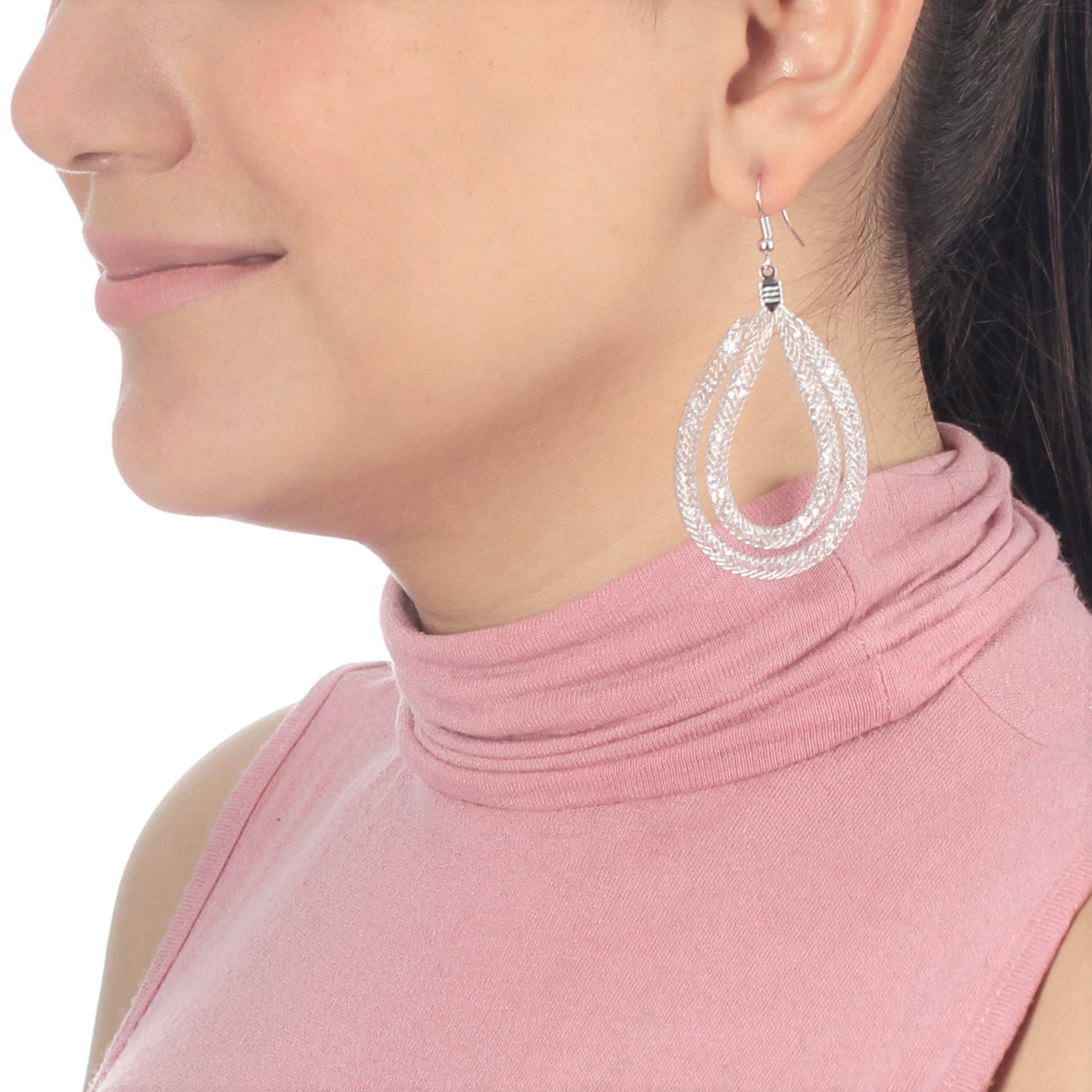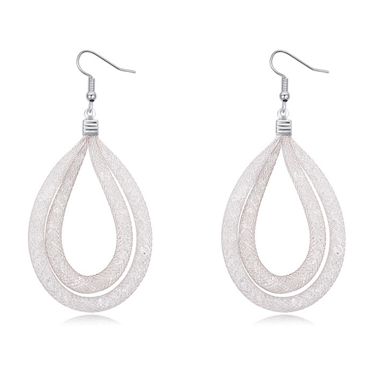 Aretes en baño de oro blanco de 18 quilates, diseño de gota, tubo de red con cristales en color blanco. Fabricado en una estructura de aleación de platino con rodio sin níquel.