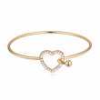 Lindo brazalete en baño de oro amarillo de 18 quilates con detalle de corazón e incrustaciones de cristales en color blanco. Fabricado en una estructura de aleación de platino con rodio sin níquel.