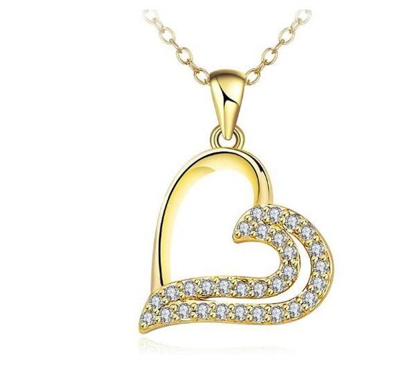 Dije con cadena en baño de oro amarillo de 18 quilates, fino diseño de corazón con incrustaciones de cristales en color blanco. Fabricado en una estructura de aleación de platino con rodio sin níquel.