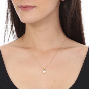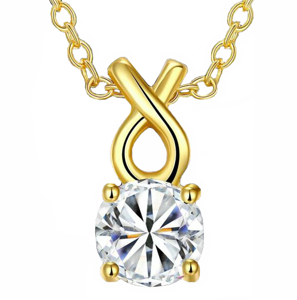 Dije con cadena en baño de oro amarillo de 18 quilates, fino diseño con cristal blanco corte brillante. Fabricado en una estructura de aleación de platino con rodio sin níquel.