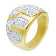 Hermoso anillo en baño de oro amarillo de 18 quilates, diseño estilo animal print, con fondo blanco e incrustaciones de cristales blancos. Fabricado en una estructura de aleación de platino con rodio sin níquel.