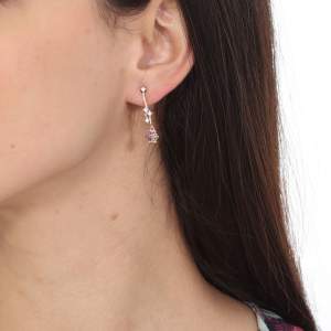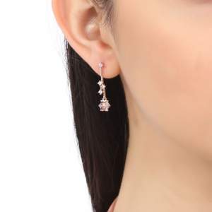 Lindos aretes en baño de oro rosa de 18 quilates, original diseño con incrustaciones de cristal en color blanco y lila. Fabricado en una estructura de aleación de platino con rodio sin níquel.