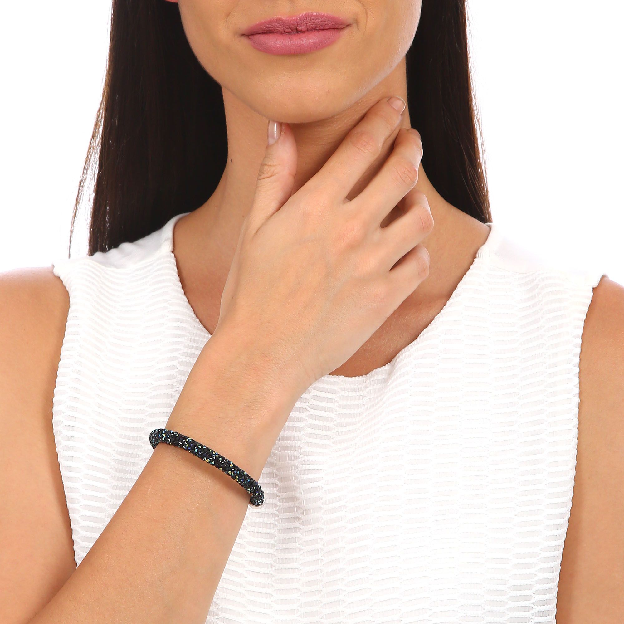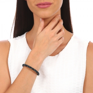 Original brazalete con detalles de baño de oro blanco de 18 quilates y cristales en color azul y negro.