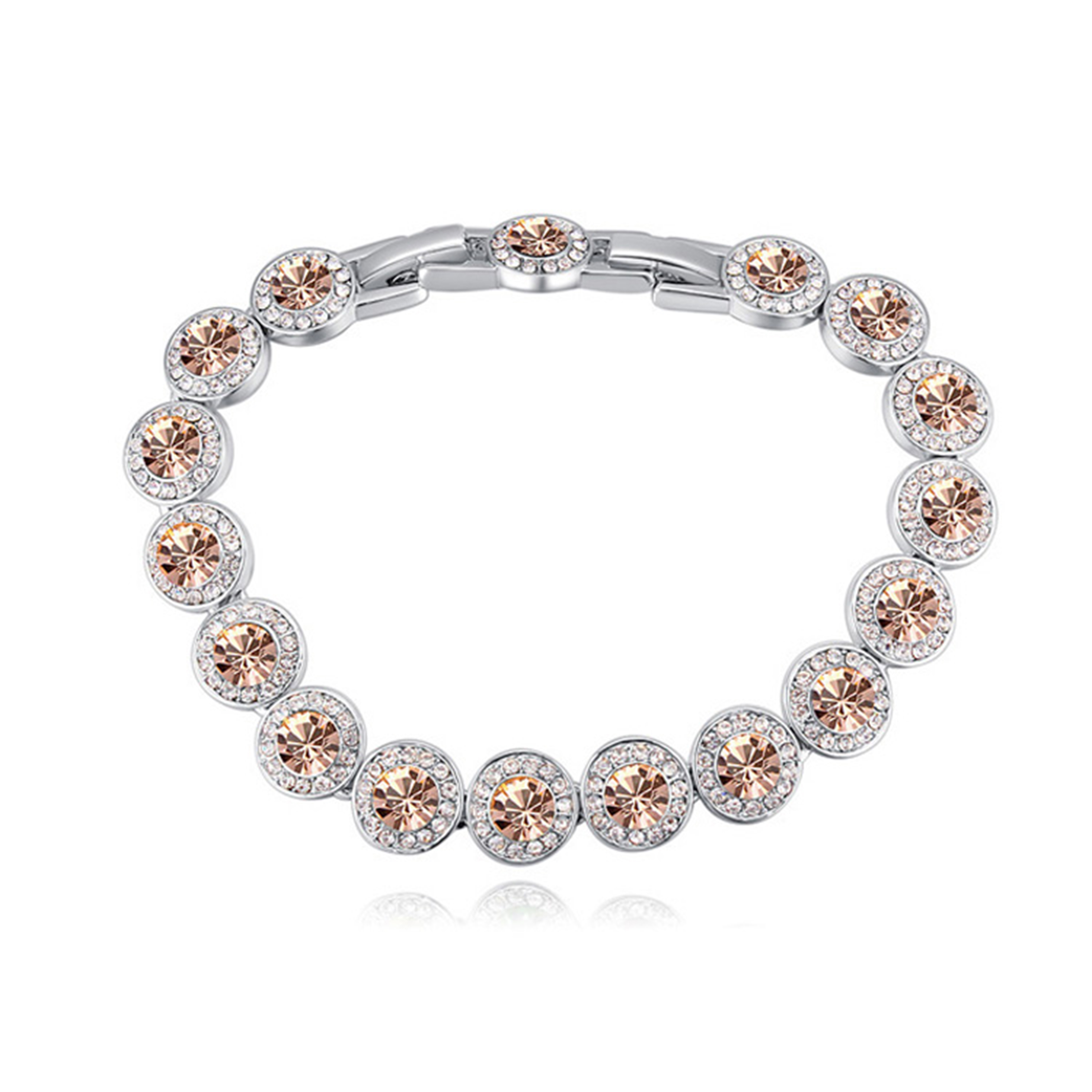 Linda pulsera en baño de oro blanco de 18 quilates , diseño con incrustaciones de cristales en color ambar. Fabricado en una estructura de aleacion de platino con rodio sin niquel. 1. Joyeria Hipo alergenica. 2. Incluye cajita de Joyeria. 3. Garantia de 30 dias por defectos de fabrica.