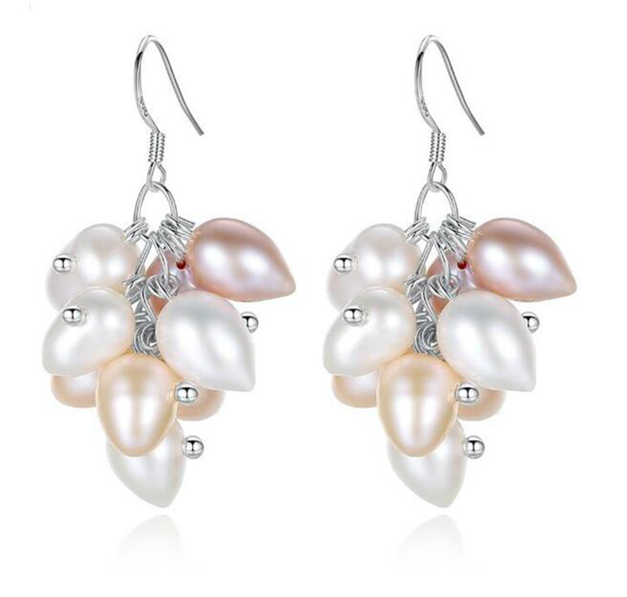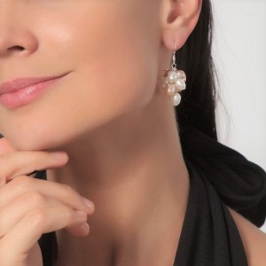 Lindos aretes en plata, elegante diseño con detalles de perlas beige, rosas y blancas. Fabricado en una estructura de aleación de platino con rodio sin níquel.