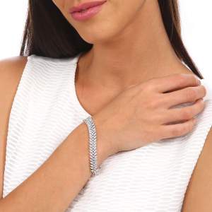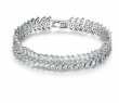 Elegante pulsera en baño de oro blanco de 18 quilates, con incrustaciones de cristales corte marquesa en color blanco. Fabricado en una estructura de aleación de platino con rodio sin níquel.