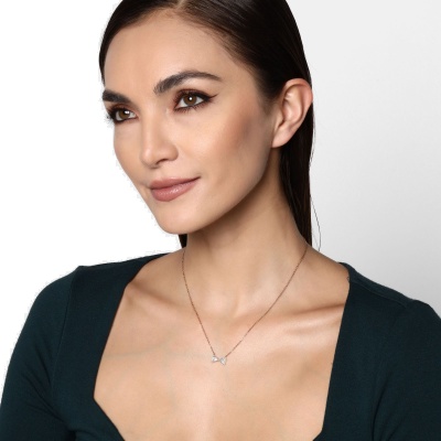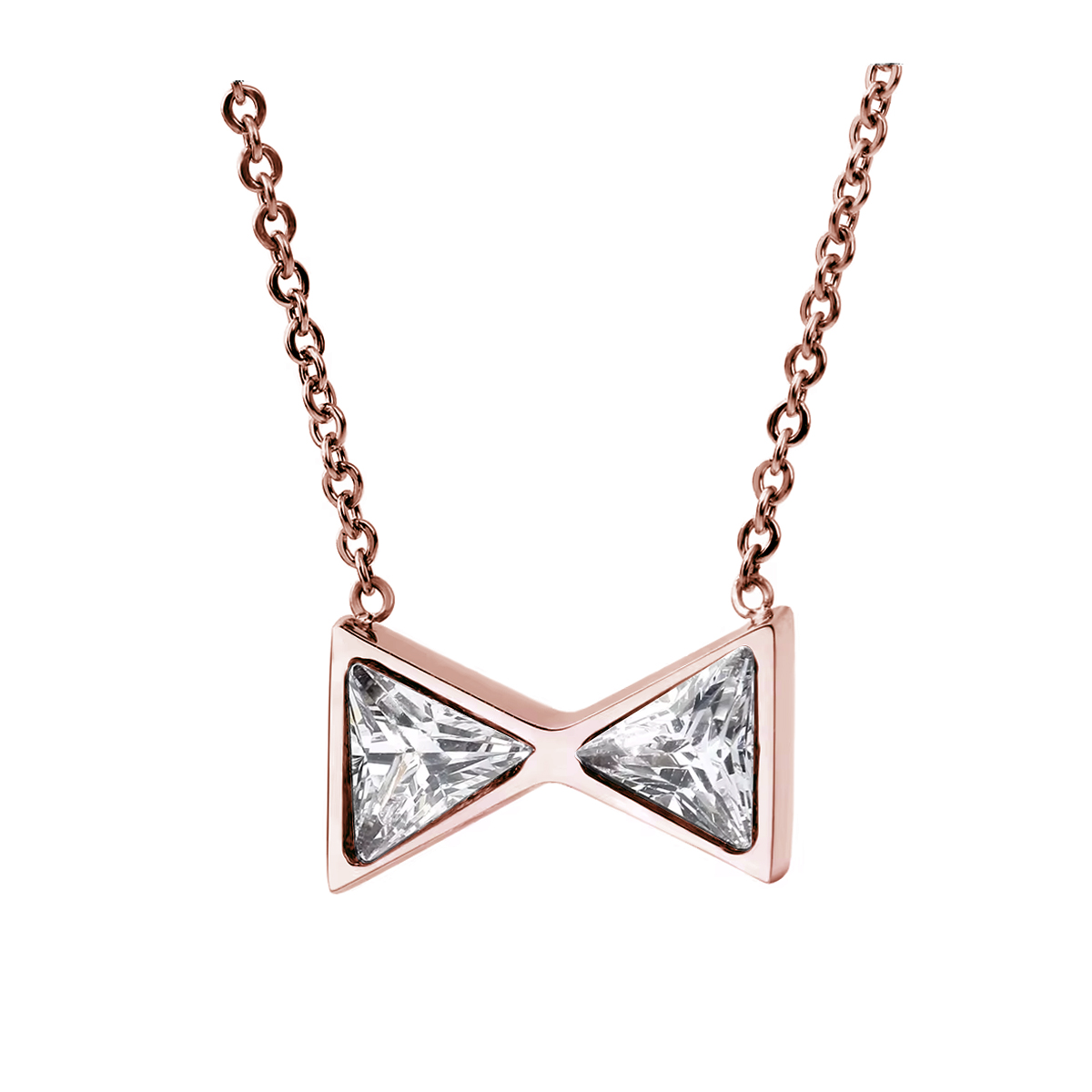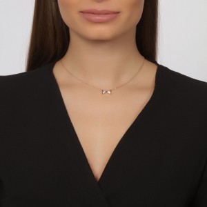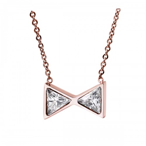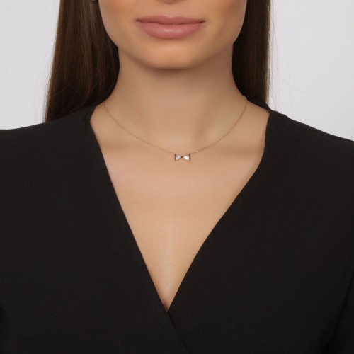 Collar en baño de oro rosa de 18 quilates, fino diseño de moño con incrustaciones de cristales en color blanco. Fabricado en una estructura de aleación de platino con rodio sin níquel.