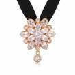 Collar en baño de oro amarillo de 18 quilates , diseño de flor con incrustaciones de cristales en color blanco y gargantilla negra. Fabricado en una estructura de aleación de platino con rodio sin níquel.