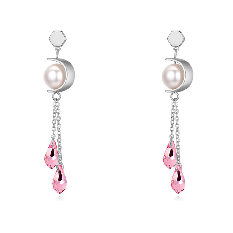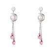 Finos aretes en baño de oro blanco de 18 quilates con cristales en color rosa y perlas blancas de cristal. Fabricado en una estructura de aleación de platino con rodio sin níquel.