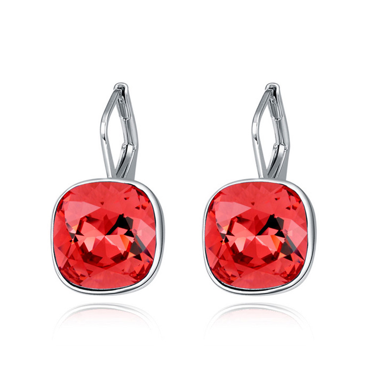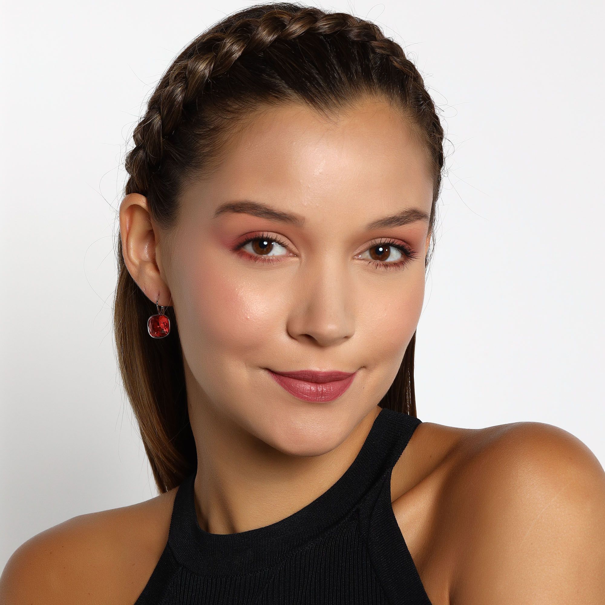 Aretes en baño de oro blanco de 18 quilates con cristal en color rojo. Fabricado en una estructura de aleación de platino con rodio sin níquel. 1. Joyería Hipo alergénica. 2. Incluye cajita de Joyería. 3. Garantía de 30 días por defectos de fabrica.