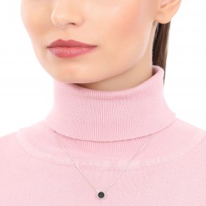 Lindo dije en baño de oro blanco de 18 quilates, con incrustación de cristal en color negro. Fabricado en una estructura de aleación de platino con rodio sin níquel.