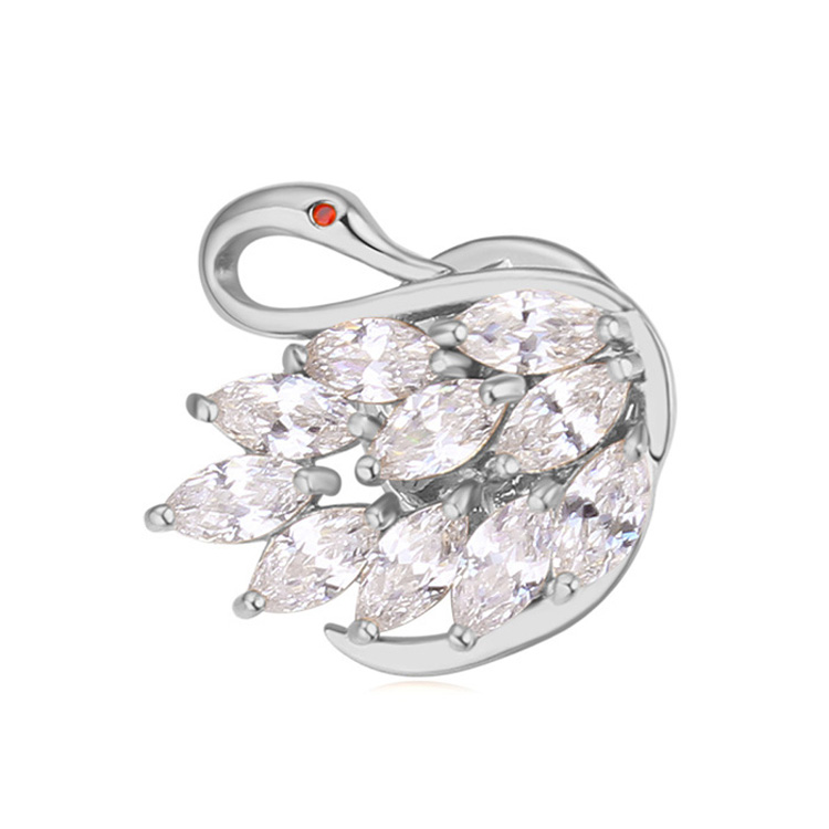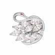 Prendedor en baño de oro blanco de 18 quilates, diseño de cisne, con cristales en color blanco corte marquesa y pequeño cristal ámbar. Fabricado en una estructura de aleación de platino con rodio sin níquel.