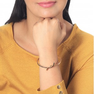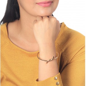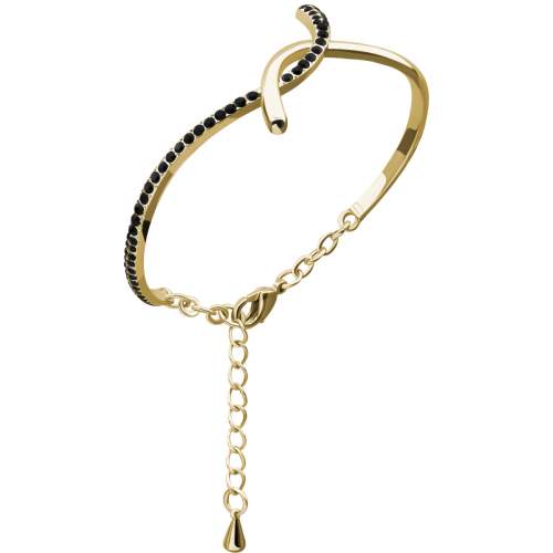 Delicado brazalete en baño de oro amarillo de 18 quilates, lindo diseño con incrustraciones de cristales en color negro. Fabricado en una estructura de aleación de platino con rodio sin níquel.