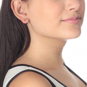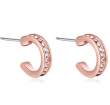 Hermosas arracadas en baño de oro rosa de 18 quilates, pequeño diseño con incrustaciones de cristales en color blanco. Fabricado en una estructura de aleación de platino con rodio sin níquel.