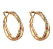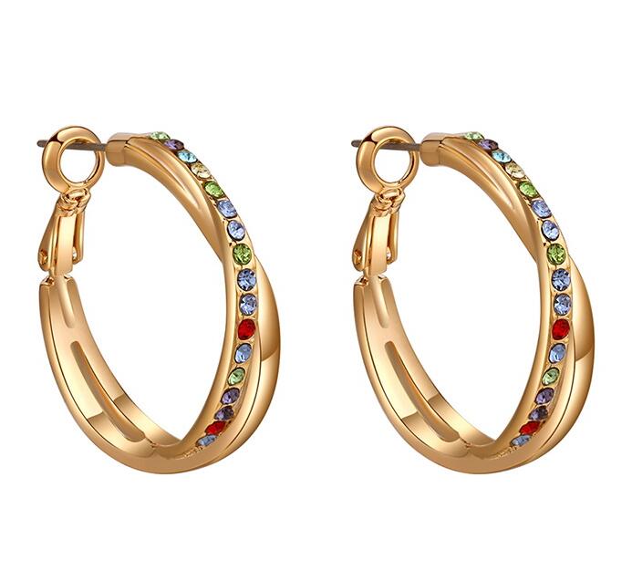 Hermosas arracadas en baño de oro amarillo de 18 quilates, diseño con incrustaciones de cristales en colores. Fabricado en una estructura de aleación de platino con rodio sin níquel.