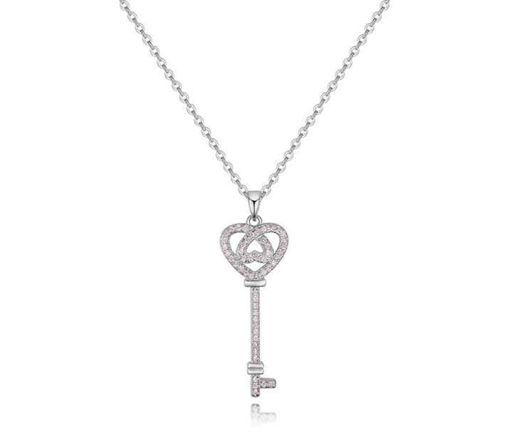 Hermoso dije con cadena en baño de oro blanco de 18 quilates, diseño de pequeña llavecita con incrustracion de cristales en color blanco. Fabricado en una estructura de aleación de platino con rodio sin níquel.