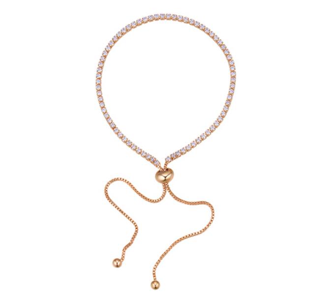 Hermosa pulsera en baño de oro amarillo de 18 quilates, diseño con incrustraciones de cristales en color blanco. Fabricado en una estructura de aleación de platino con rodio sin níquel.
