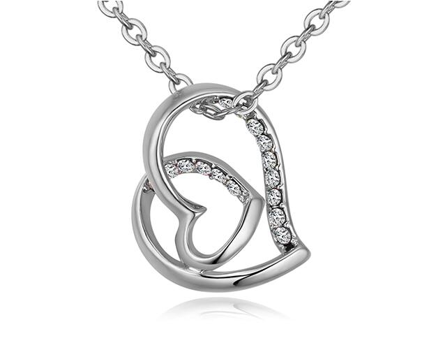 Lindo dije con cadena en baño de oro blanco de 18 quilates, diseño de corazón con incrustraciones de cristales en color blanco. Fabricado en una estructura de aleación de platino con rodio sin níquel.