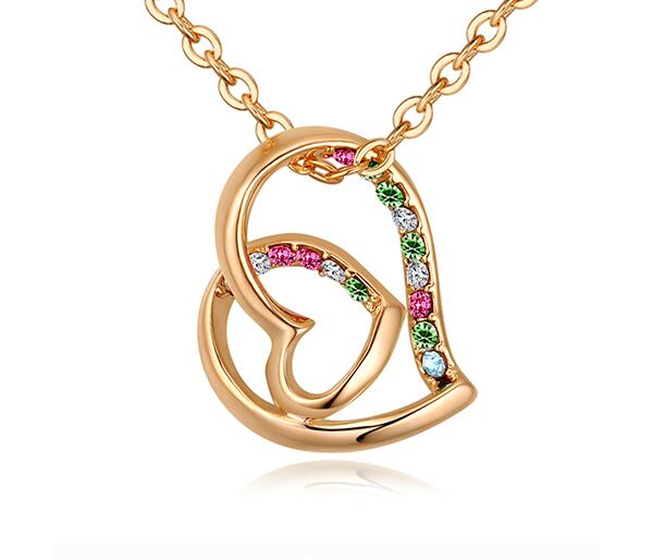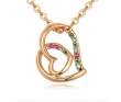 Lindo dije con cadena en baño de oro amarillo de 18 quilates, diseño de corazón con incrustraciones de cristales en colores. Fabricado en una estructura de aleación de platino con rodio sin níquel.