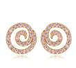 Elegantes aretes en baño de oro amarillo de 18 quilates, original diseño de espiral con incrustaciones de cristales en color blanco. Fabricado en una estructura de aleación de platino con rodio sin níquel.