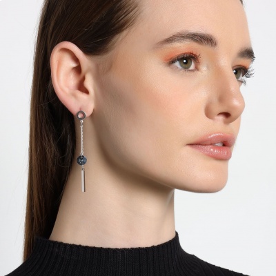 Originales aretes en baño de oro blanco de 18 quilates, diseño con cristales color gris oxford. Fabricado en una estructura de aleación de platino con rodio sin níquel.