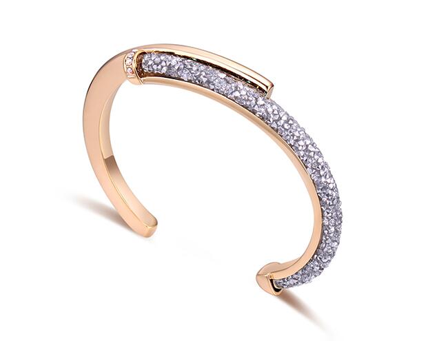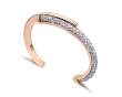 Elegante brazalete en baño de oro amarillo de 18 quilates, diseño con incrustración de cristales color blanco y gris. Fabricado en una estructura de aleación de platino con rodio sin níquel.