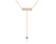 Original collar en baño de oro amarillo de 18 quilates, diseño de cilindro con cadena colgante, cristal blanco corte brillante e incrustraciones de cristales en color blanco. Fabricado en una estructura de aleación de platino con rodio sin níquel.