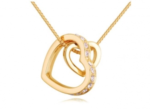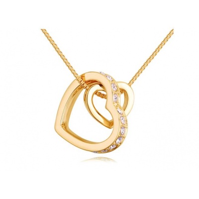 Hermoso dije con cadena en baño de oro amarillo de 18 quilates, diseño de dos corazones entrelazados con incrustraciones de cristales blancos. Fabricado en una estructura de aleación de platino con rodio sin níquel.