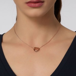 Hermoso dije con cadena en baño de oro rosa de 18 quilates, diseño de dos corazónes entrelazados con incrustraciones de cristales en color blanco. Fabricado en una estructura de aleación de platino con rodio sin níquel.