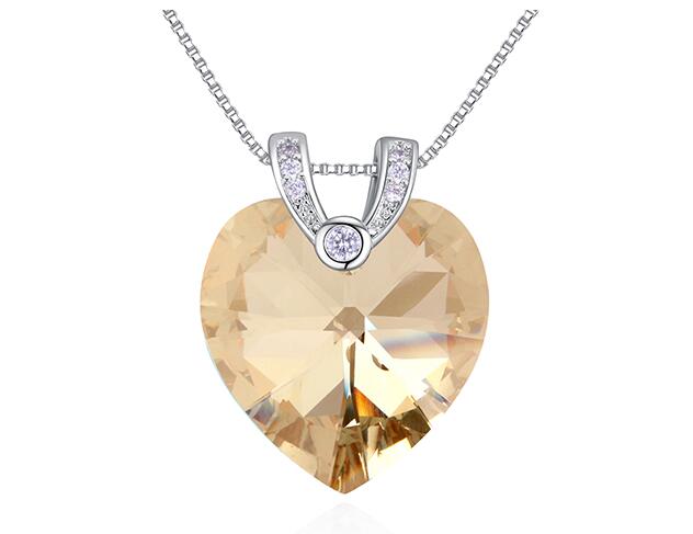 Lindo dije con cadena en baño de oro blanco de 18 quilates, diseño con corazón de cristal color ámbar e incrustaciones de cristales blancos. Fabricado en una estructura de aleación de platino con rodio sin níquel.
