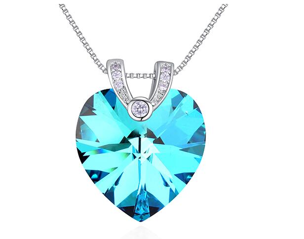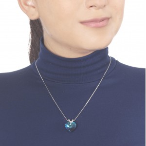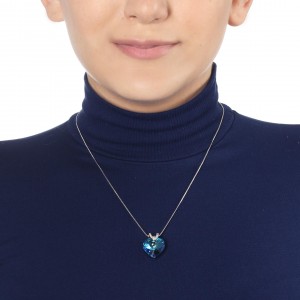 Lindo dije con cadena en baño de oro blanco de 18 quilates, diseño con corazón de cristal azul e incrustaciones de cristales blancos. Fabricado en una estructura de aleación de platino con rodio sin níquel.